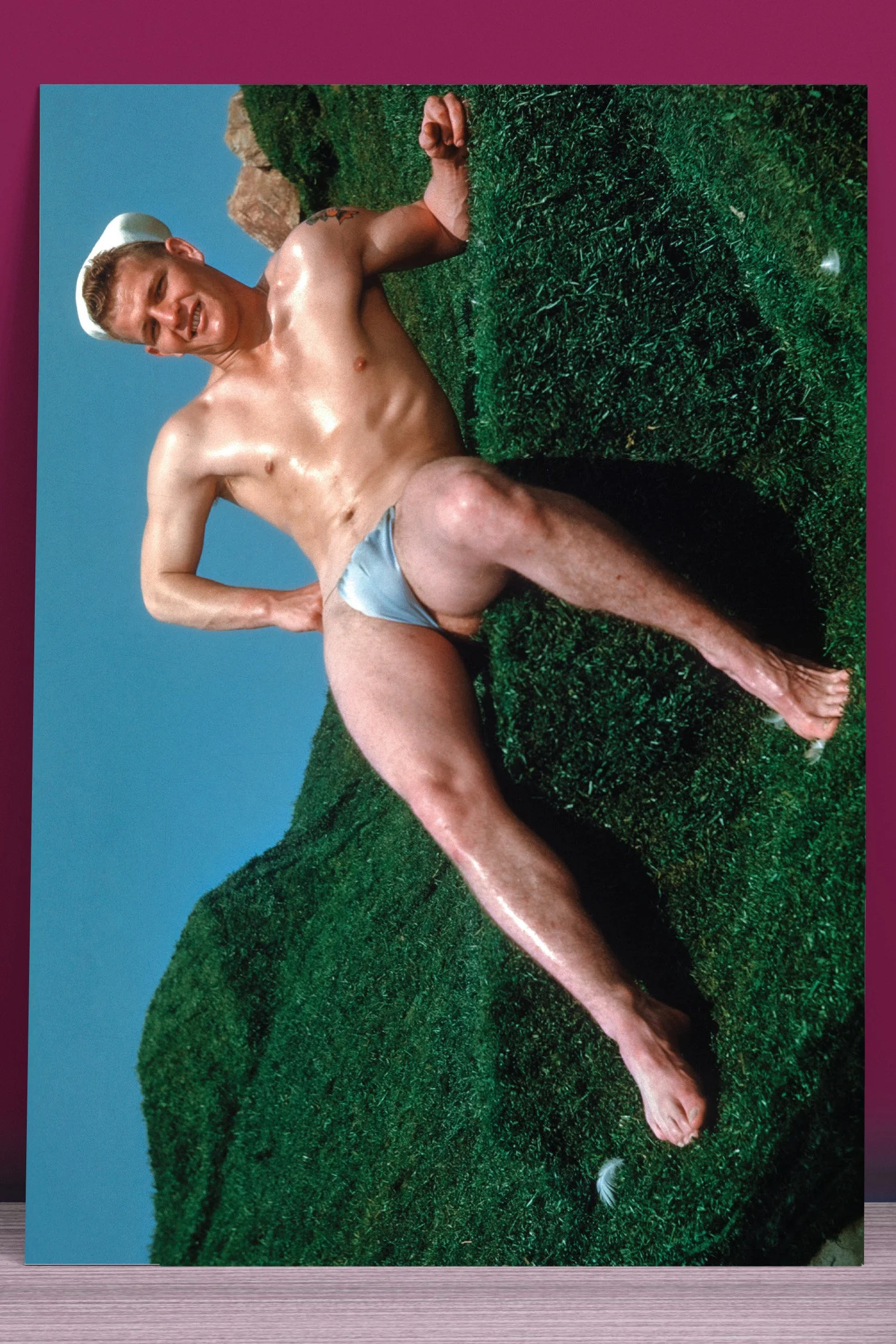 Our Physique Pictorial hard magnets are sexy, fun and and touchstone of queer history! Each magnet has a different vintage cover featuring Bob Mizer ‘s stunning, playful photography. Adorn your fridge, toaster, lunchbox (anything metal!) with these magnets. The magnets are hard and sturdy — just like the studs emblazoned on them — measuring 2x3 inches. They make a perfect gift for yourself and your friends! Get yours today!
